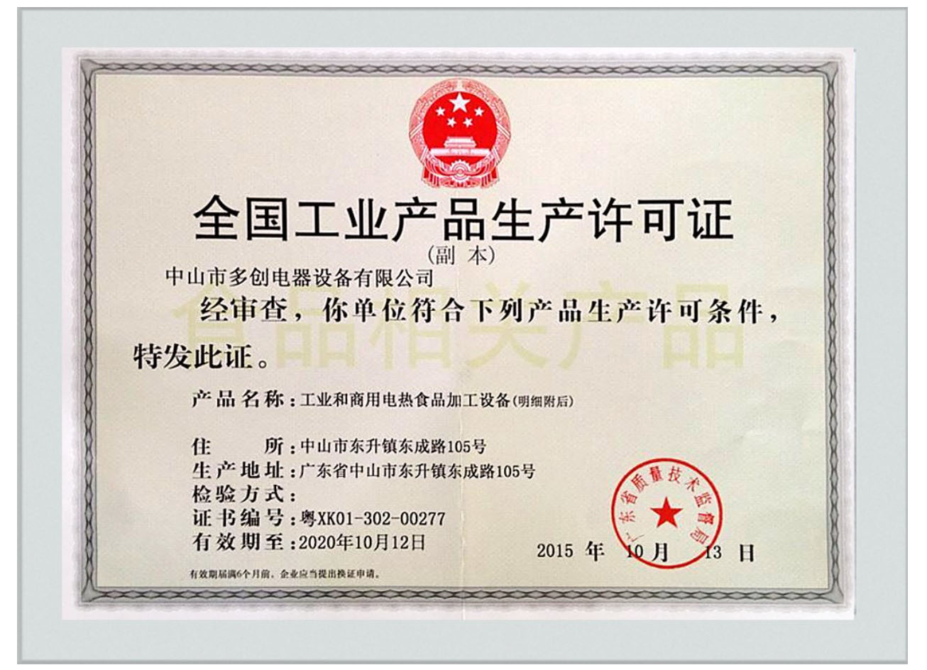 產(chǎn)品通過(guò)了生產(chǎn)許可XK21-007-01715 粵XK01-302-00608認(rèn)證,并獲得多項(xiàng)國(guó)家認(rèn)可證書(shū)。
